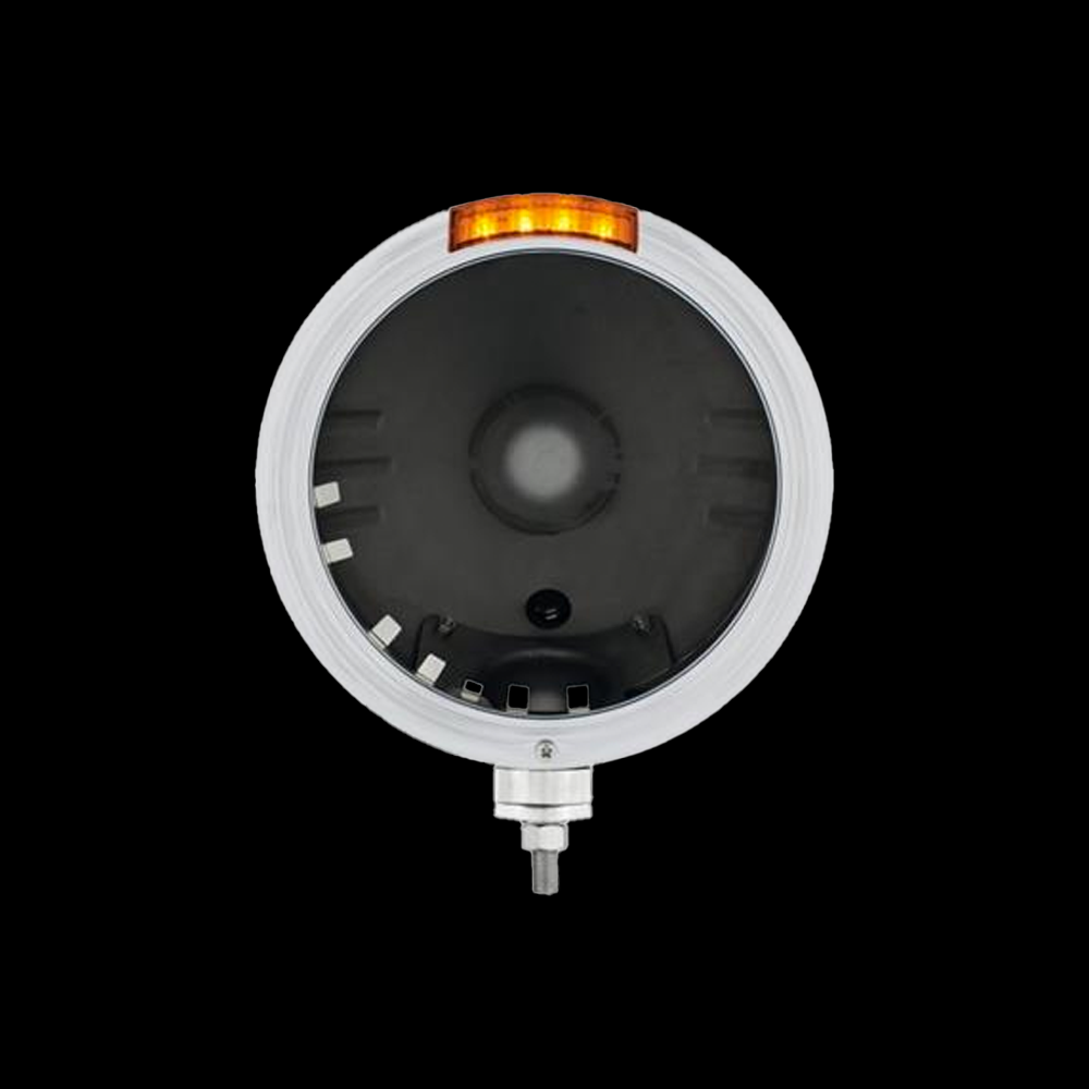Stainless Classic Stripe Headlight Housing No Bulb w/ LED Turn Signal