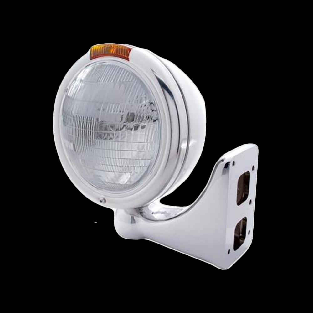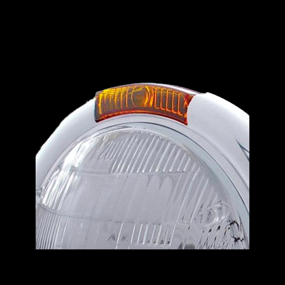 Stainless Steel Classic Headlight 6014 Bulb & Turn Signal - Amber Lens