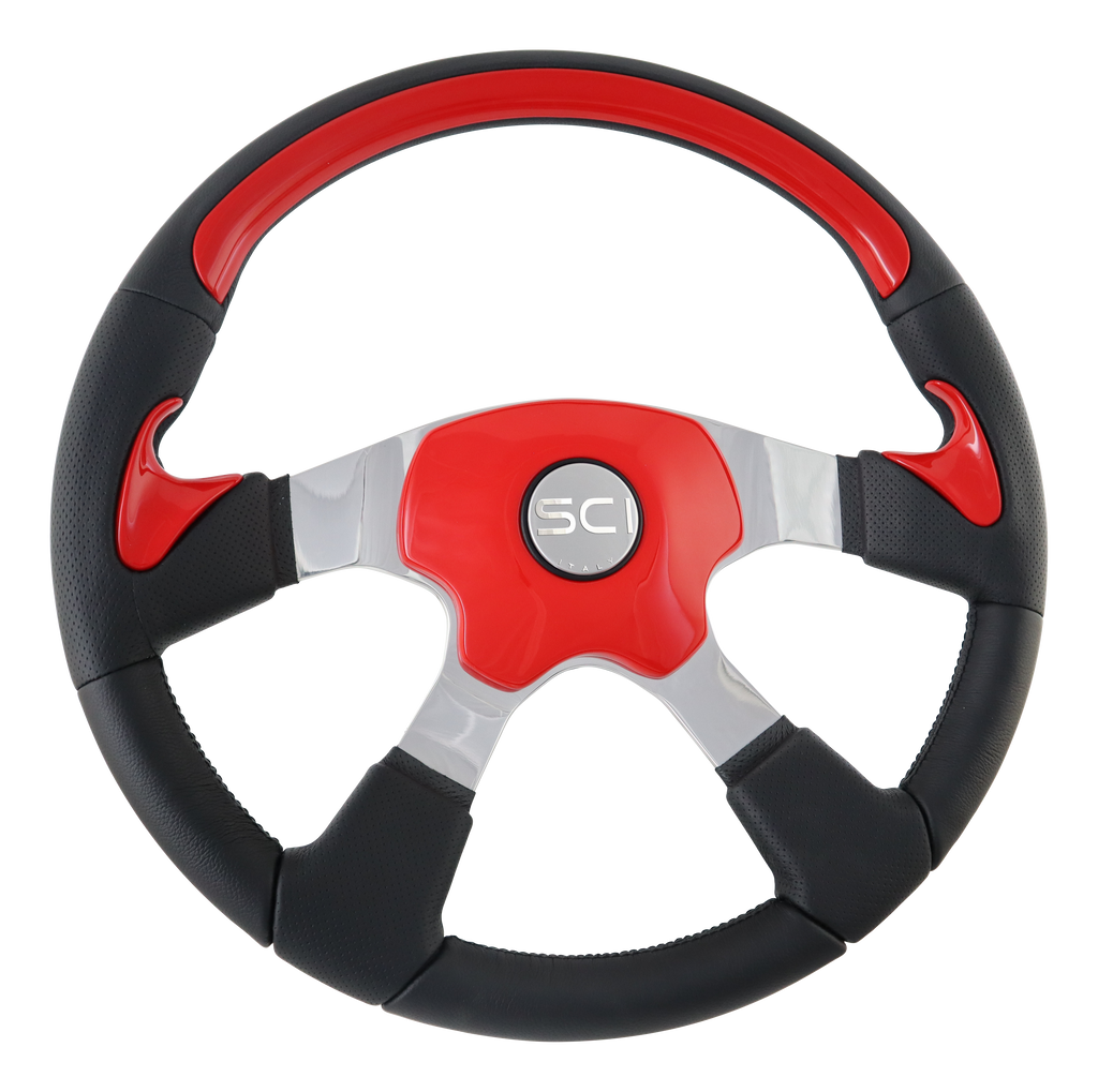 *Traveler Custom - 18" Leather Rim w/Custom Paint/Printed Inserts, Pol. Alum. 4-Spoke, Elite 4 - Custom Pad, SCI Horn Button - Silver