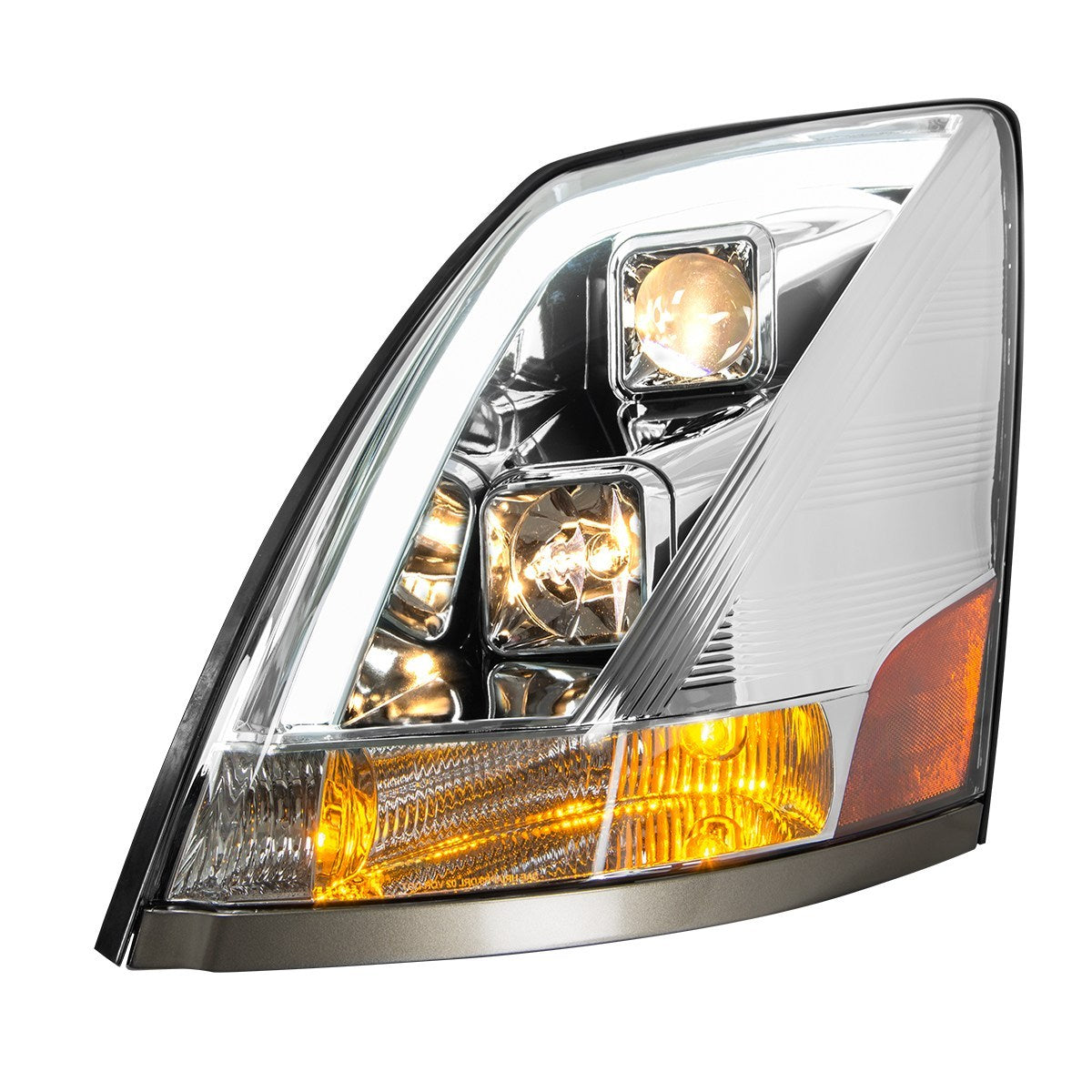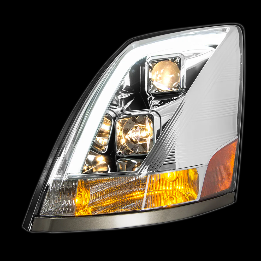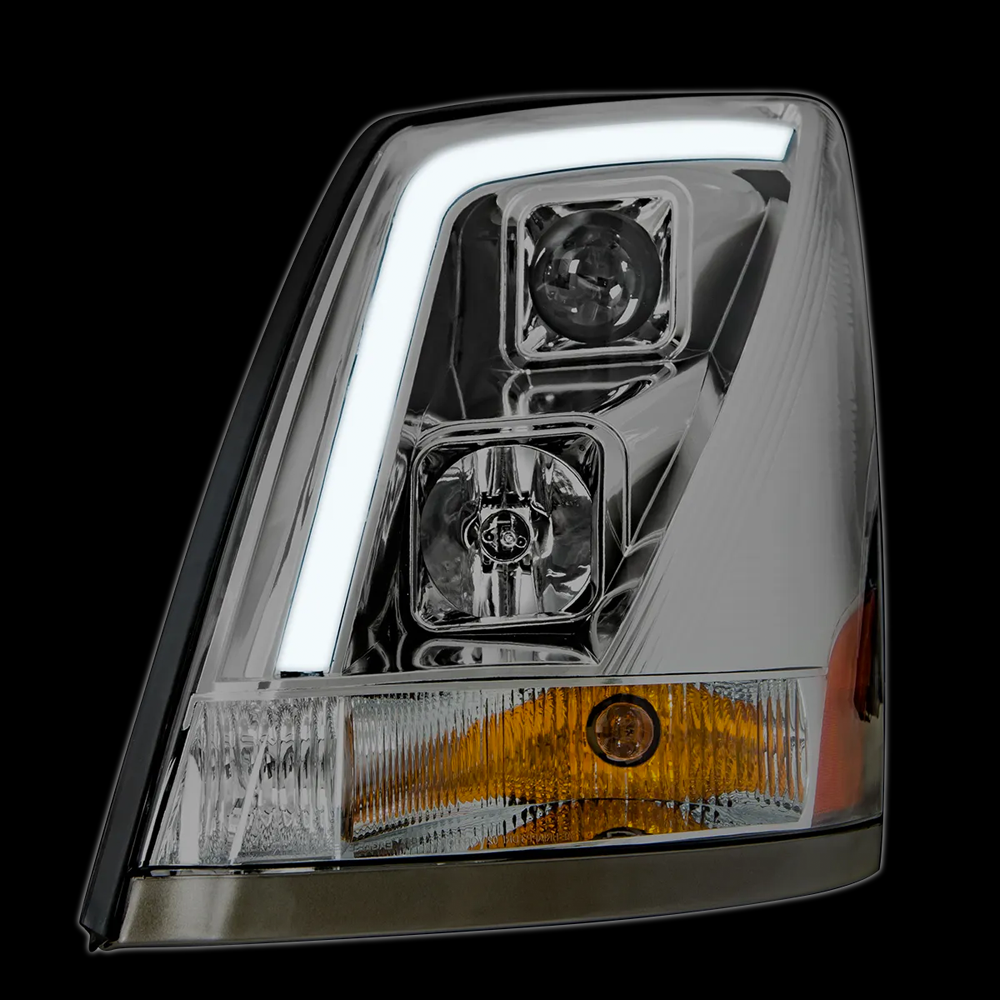 Volvo VN/VNL Chrome Projector Headlight W/White High Power LED Poisition/Daytime Running Light - Driver